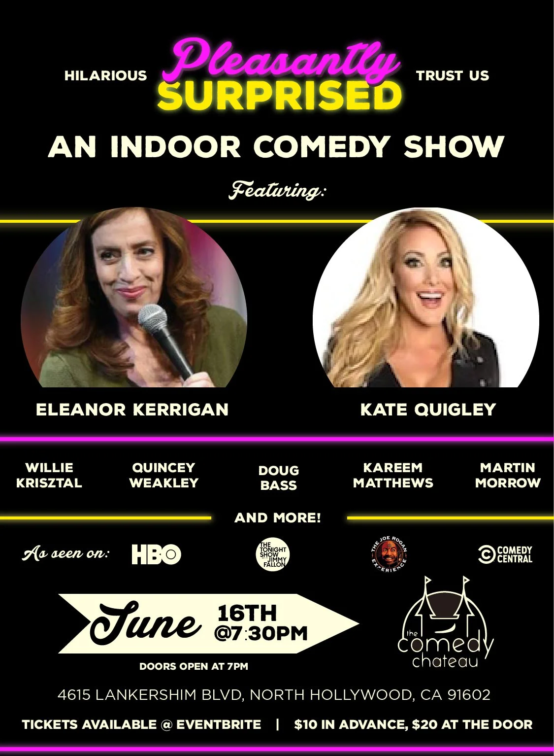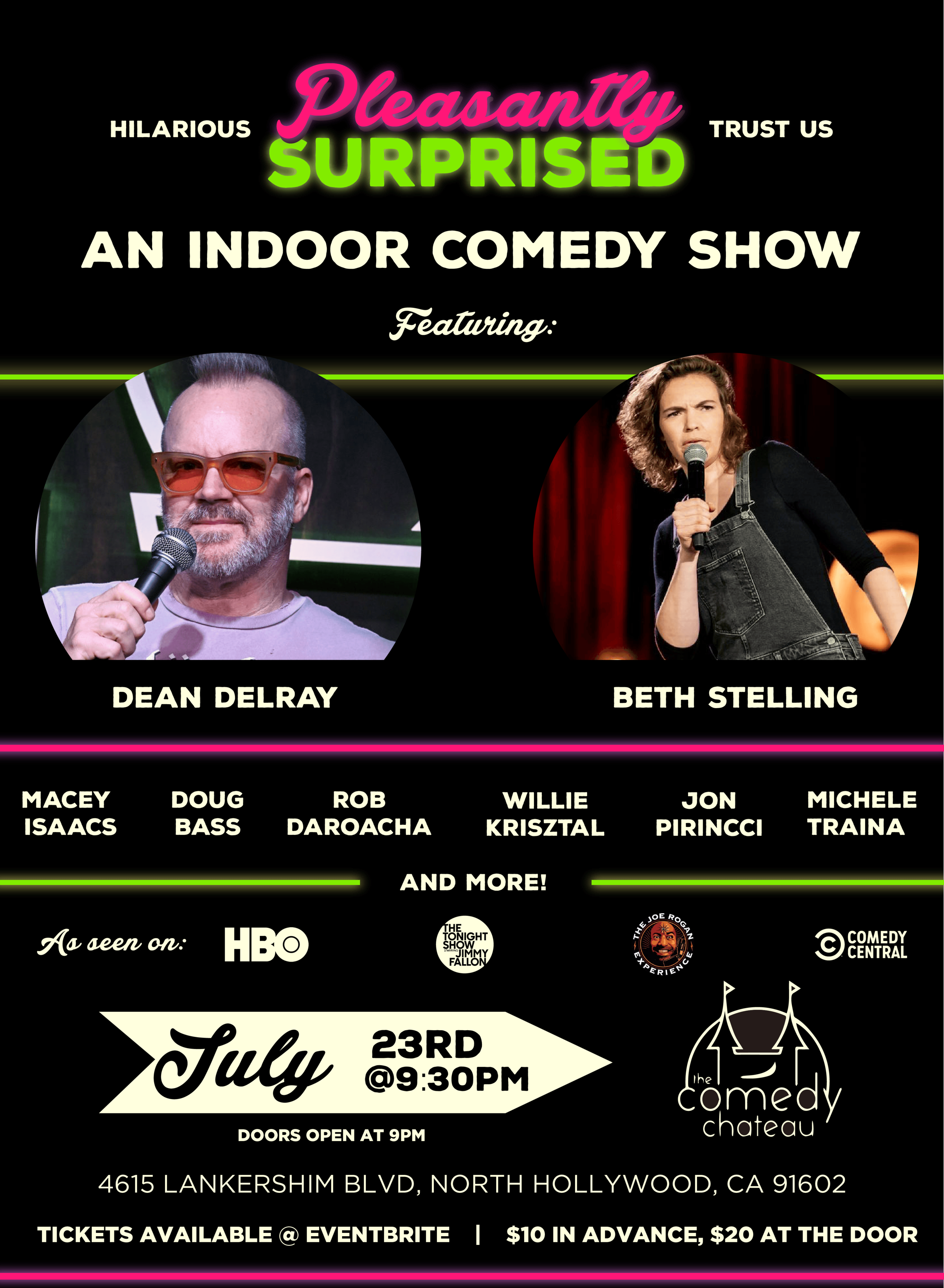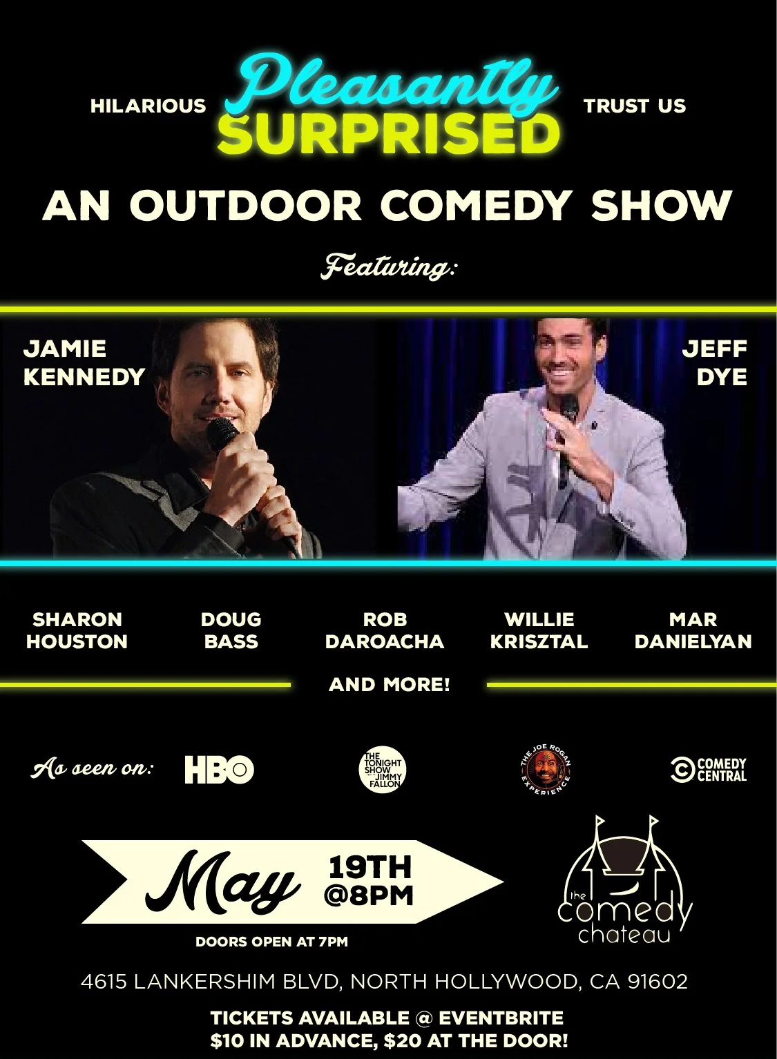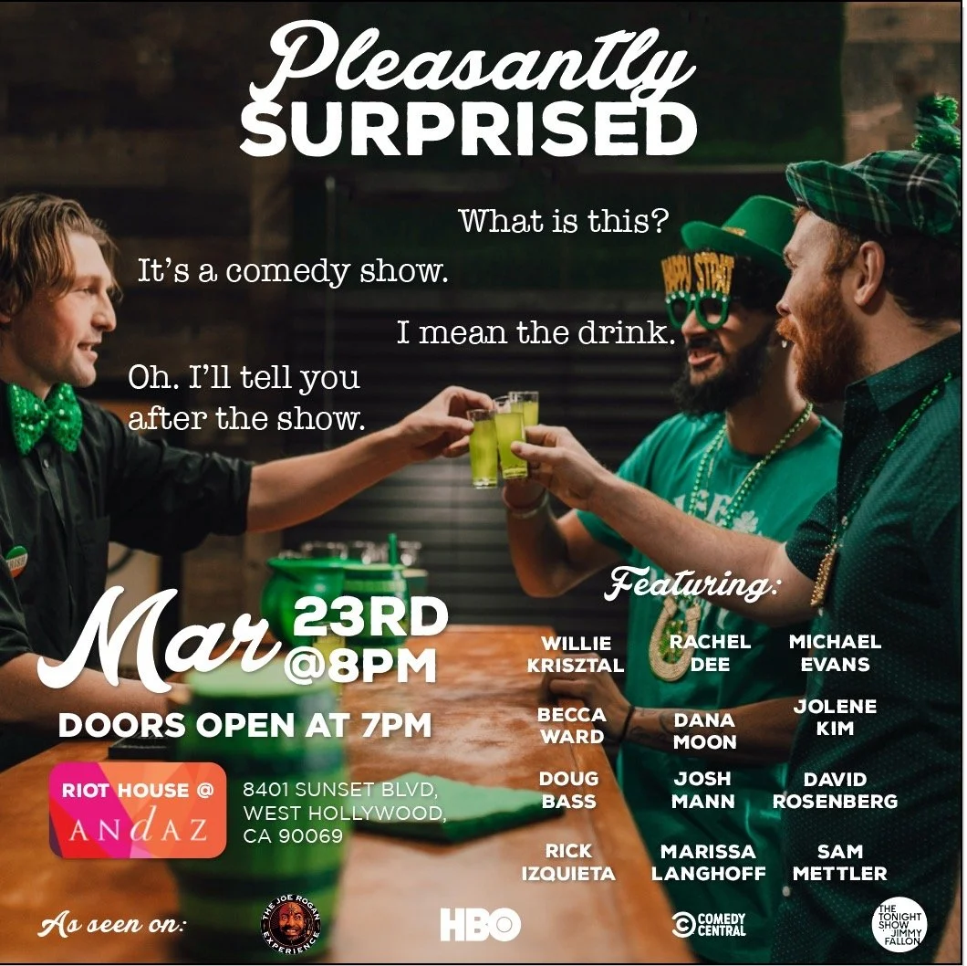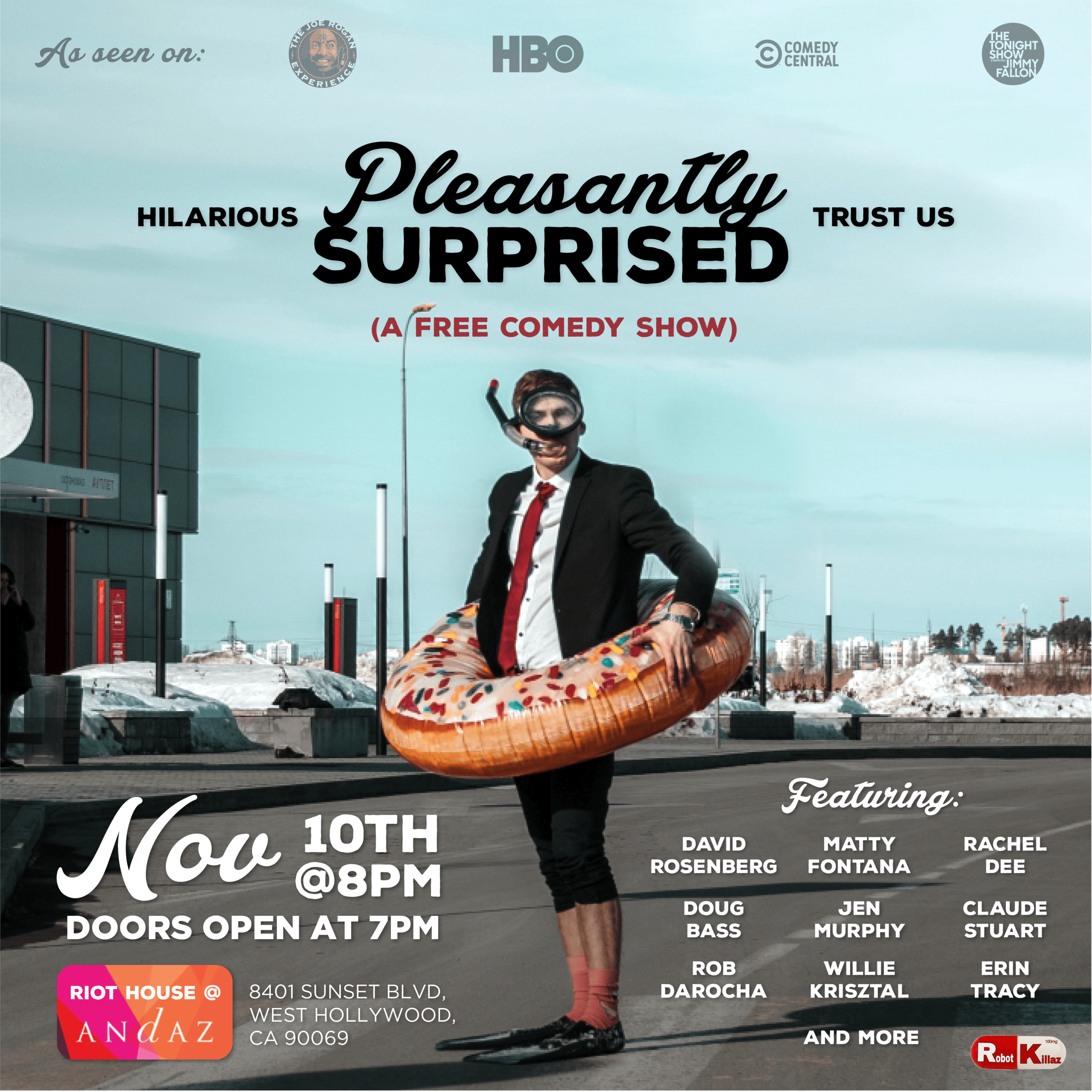 He also produces the Pleasantly Surprised Comedy Show which runs monthly at various locations throughout Los Angeles.